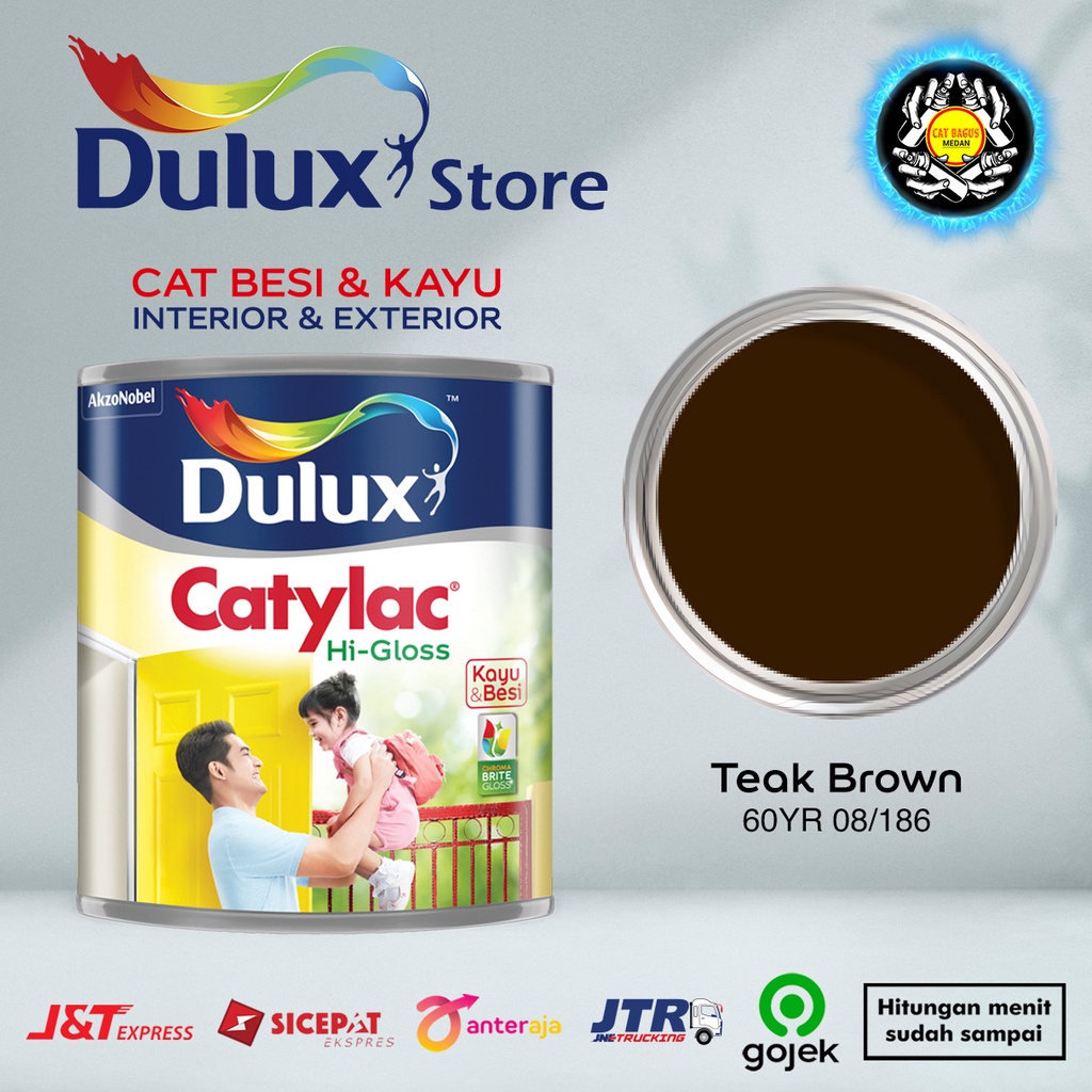 CAT MINYAK CAT KAYU DAN BESI DULUX CATYLAC HI-GLOSS 1 KG WARNA TEAK BROWN 60YR 08/186 COKELAT COKLAT TUA 1KG CAT KUSEN PINTU JENDELA ENAMEL ANTI KARAT ANTI RAYAP GOJEK HIGLOSS VGLOSS V-GLOSS AVIAN BEE BRAND 1000 JUNIOR EXTERIOR TERMURAH DI MEDAN BINJAI