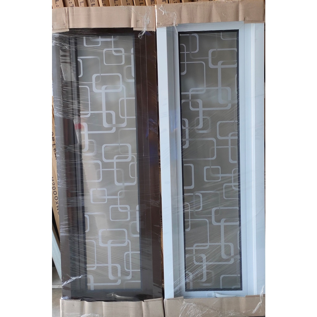 Jendela Aluminium Kusen Jungkit Motif Kaca Es Buram Crystal Kotak Premium Minimalis