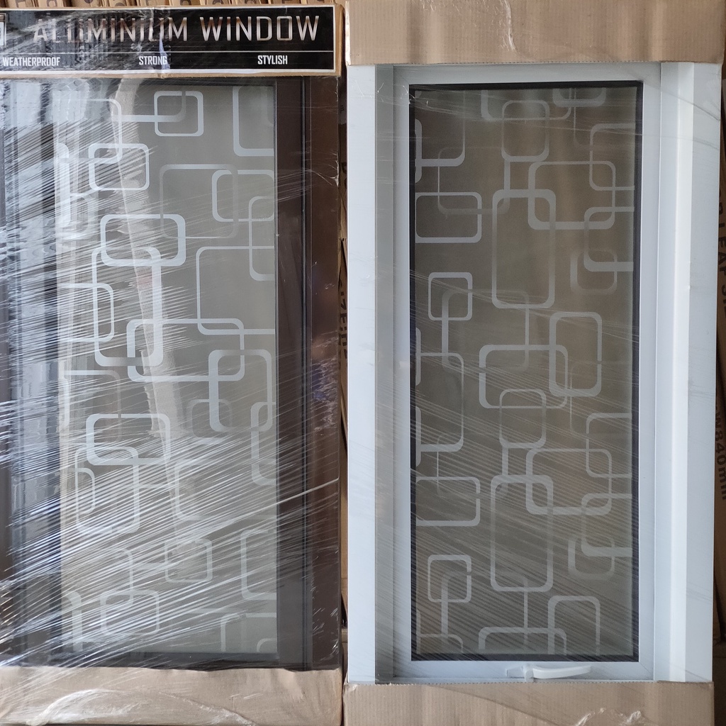 | Nama Lengkap | Jendela Aluminium Kusen Jungkit Motif Kaca Es Buram Crystal Kotak Premium Minimalis |