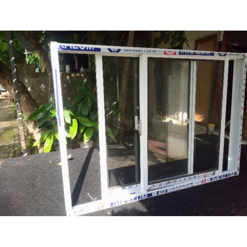 Cara Mendapatkan kusen dan jendela aluminium sliding uk. LxT 140x100 lengkap 1 set